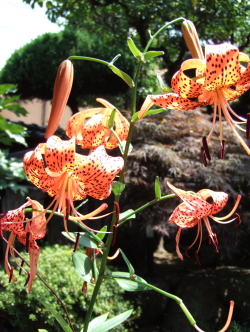 | 梅雨のさなかの真夏日が続きます。 今朝、「オニユリ」が開花しました。 南国の風情が一杯ですね。 蕾が沢山あります、ほかも開花すると、正に「夏」真っ盛りの感じでしょうか。 |