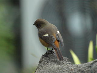 葺き替え前に撮った鬼瓦です。棟瓦も結構痛んでいますね。 この写真は実は「ムクドリ」(?)の訪問を撮ったものなんですが・・・ |