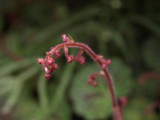 これ何か分かりますか? 「雪ノ下」の開花前の様子です、ちょっとした「恐竜」じゃないですか |