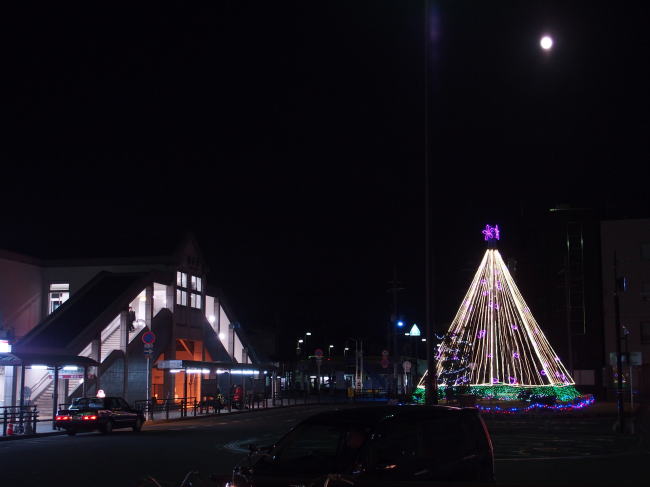 駅前のイルミネーション、丁度満月(?)が出ておりとてもいい感じでした。![]() |