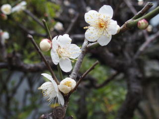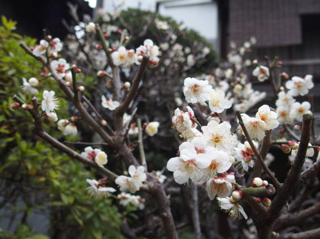 玄関の手前の白梅がいい香りでお迎えしています。 |