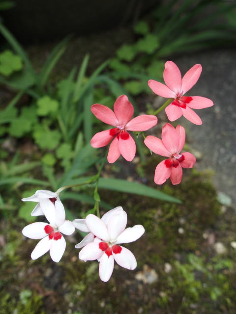 5/31 雨の後、「姫檜扇」が開花しています、野生の小さくて可愛い花です。小鳥が運んできてくれたのでしょう。 |